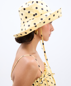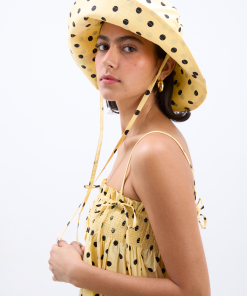Damson Madder Women’s Sunhat In Butter Yellow & Black Polka Dot | Yellow
