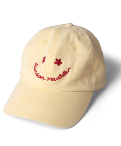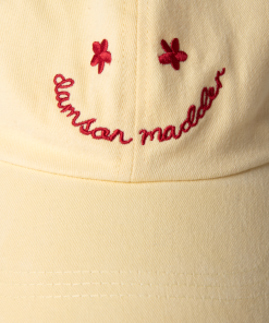 Damson Madder Women’s Washed Smiley Cap In Butter With Red Embroidery | Butter