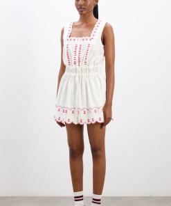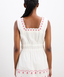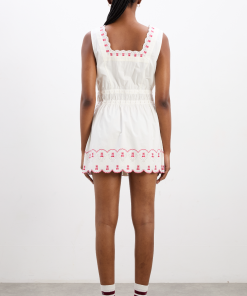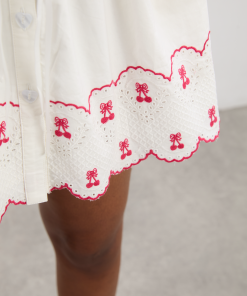 Featuring a square neck and functional waist ties, the Amaya Mini Dress is the ultimate elevated everyday staple. Adorned with cherry embroidery and lace trim detailing, and made from 100% cotton, the Amaya effortlessly combines comfort and style.