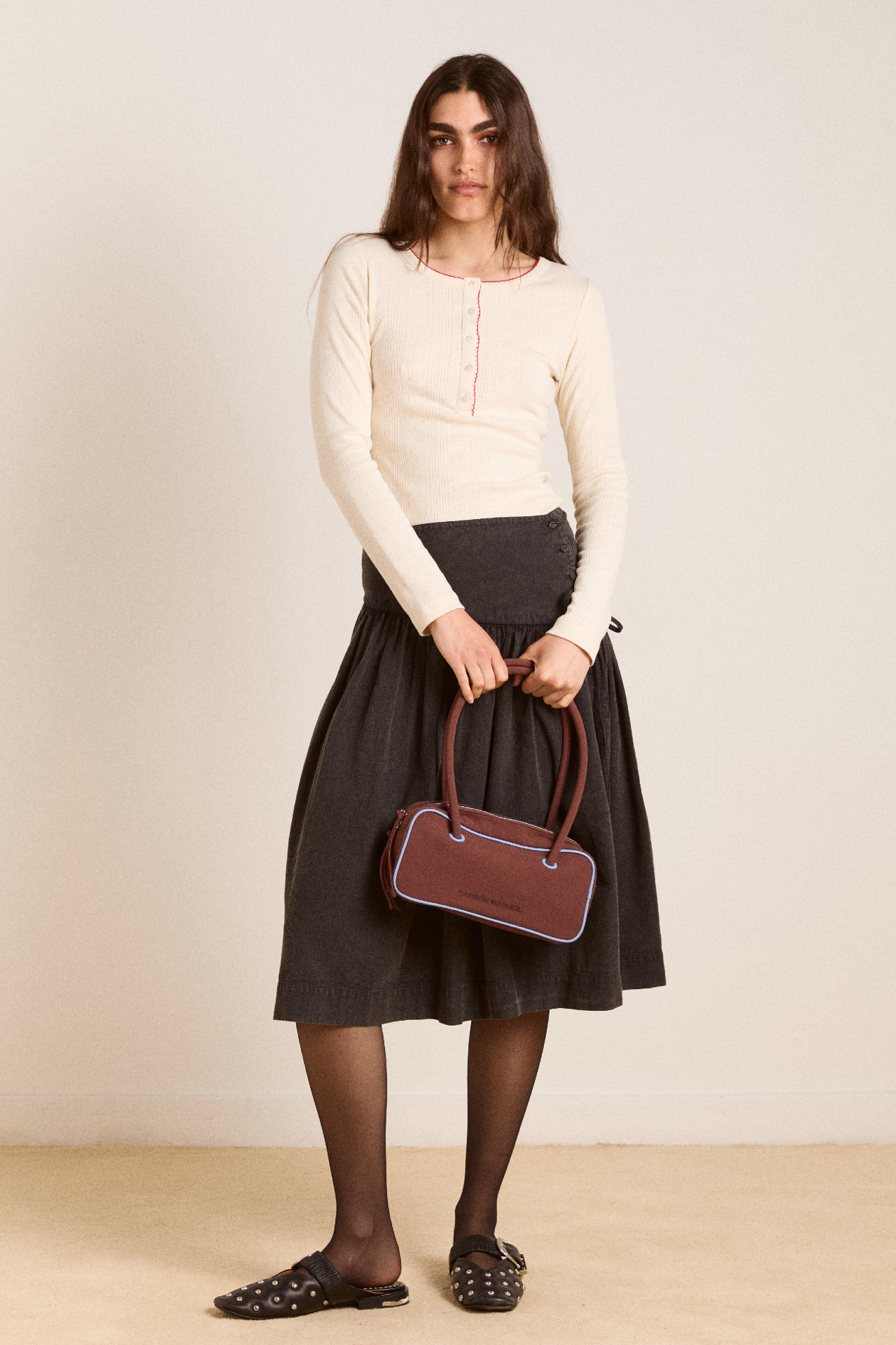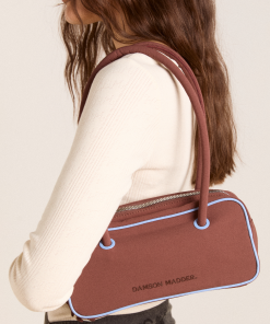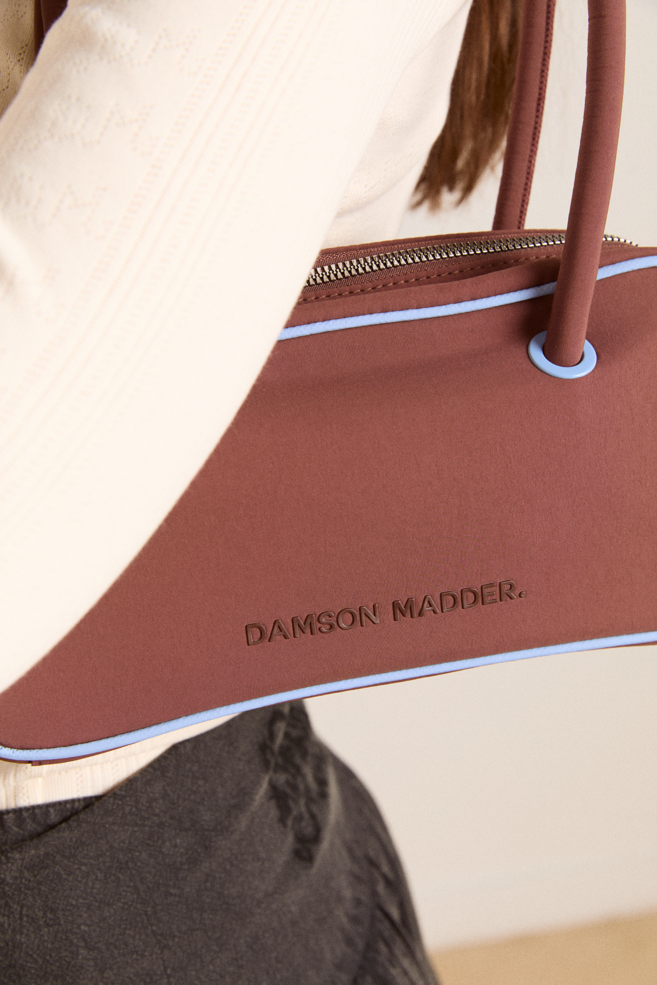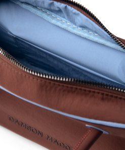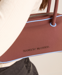 Our take on a classic bowler bag, meet the Benny Mini Bowler in chocolate brown & blue. Featuring contrast blue piping details and lining, as well as a metal zip closure for security, the Benny is a staple that will elevate any look. Finished with a rubberised Damson Madder logo.