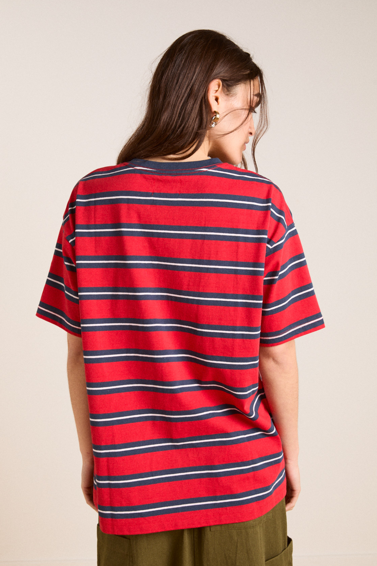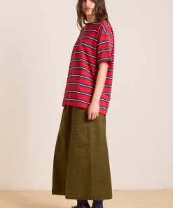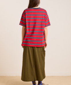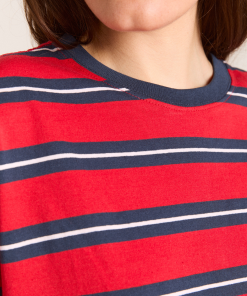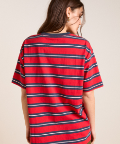Made from 100% organic cotton, the Boyfriend Tee in red navy stripe is cut in our signature boyfriend fit for a relaxed look. Complete with our custom red navy stripe print and signature DM logo embroidery, you will reach for this piece over and over.