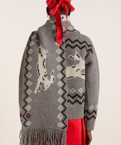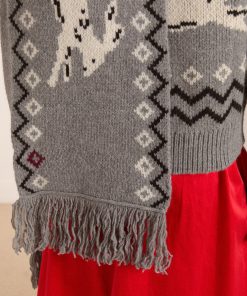 Elevate your winter wardrobe with this oversized scarf, adorned with a charming bunny motif throughout. Finished with elegant tassel details, it’s crafted from 100% wool for a soft, cozy feel.