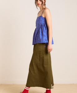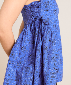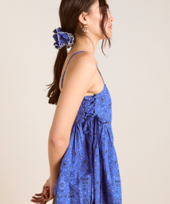 The perfect flowy summer cami, the Cressida features a square neck with adjustable tie detailing at the sides. A shirred back bodice provides stretch for a comfortable fit, finished in a custom blue paisley pattern that creates a vintage feel. Pair with our matching accessories.