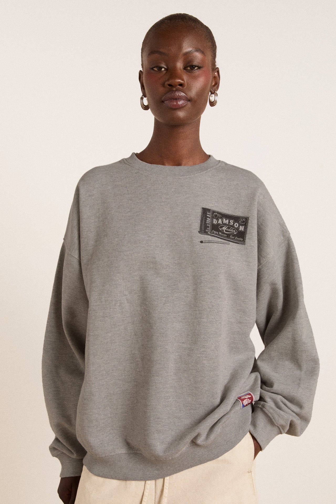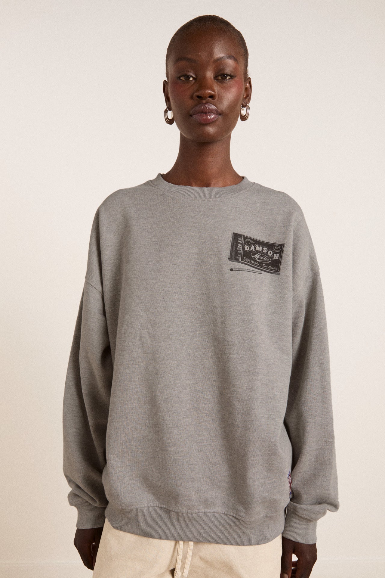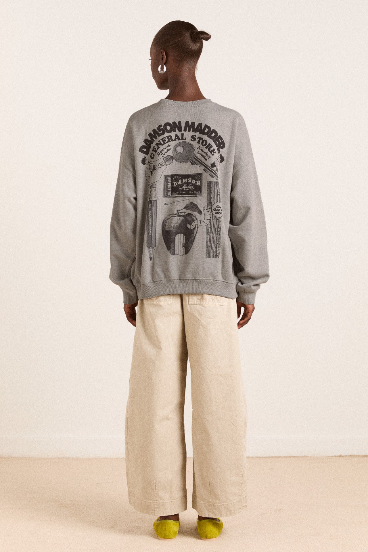 Hand drawn by our creative director, the DM General store sweat is printed on a comfortable, oversized cotton marl.