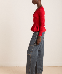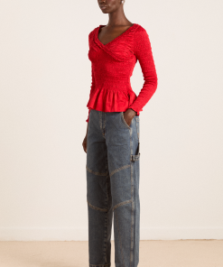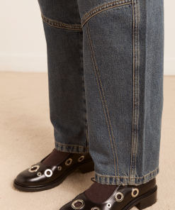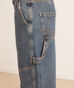 Our well-loved Drew Jeans are back in a vintage wash, expertly crafted from 100% organic cotton. A mid rise, relaxed fit which can be adjusted to your preference with the back waist adjuster. Finished with knee panel detailing and Damson Madder embroidery on the back pockets. Pair with our matching Emilie Workwear Jacket for a complete head-to-toe look.