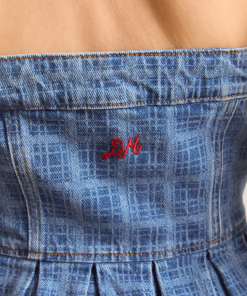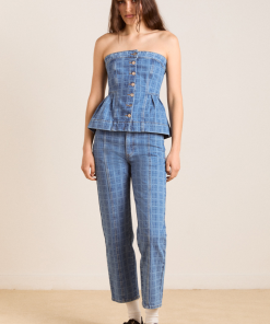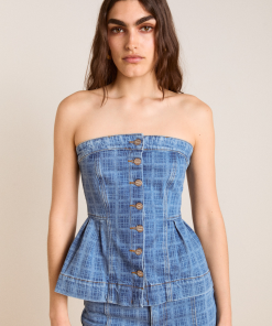 Expertly crafted using waterless laser technology, the Eloise Denim Top makes a statement in our laser check print. Featuring a peplum hem, strapless neckline and front shank opening, it’s the perfect top to elevate any look. Pair with our matching Tovie Jeans for a head to toe look.