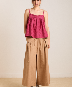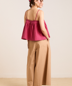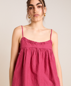 The perfect flowy summer cami, the Flynn in berry business stripe features a scoop neck with adjustable straps and a keyhole detail at the back. A swing shape provides a comfortable fit and breathability. Pair with our matching accessories.