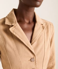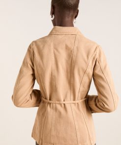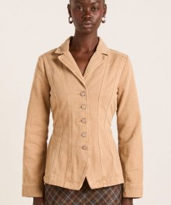 DM’s take on sharp tailoring, the Francie Blazer in tan is crafted from a blend of organic and recycled cotton, featuring a front shank opening and seam detailing. Adorned with tonal DM embroidery on the back and a removable tie belt. Pair with our matching Sylvie Jean or Kat Kilt for a complete head-to-toe look.