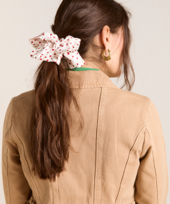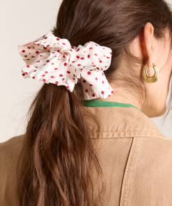 Our bestselling Frill Edge Scrunchie is back in our new off white and red spot print. Cute and practical, this 100% organic cotton scrunchie is the perfect finishing touch to any look.