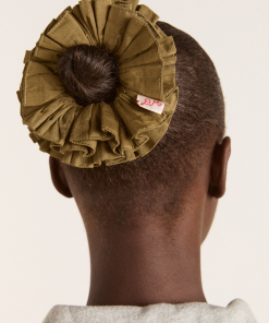Crafted from 100% organic cotton and boasting a shirred garter design, the Garter Scrunchie in olive satin will elevate any hairstyle. Featuring our signature DM branded tab. Pair with our matching Hadley Blouse and Josie Midi Skirt.