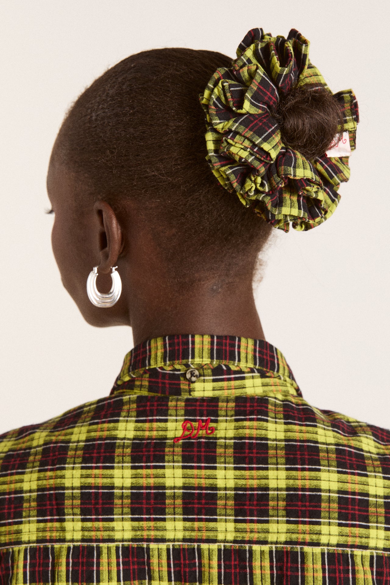 Versatile and stylish, the Garter Scrunchie in yellow tartan can be worn two ways. Crafted from 100% organic cotton, it is designed to weave through your plait or tie into a bow. Finished with our signature embroidered DM logo.