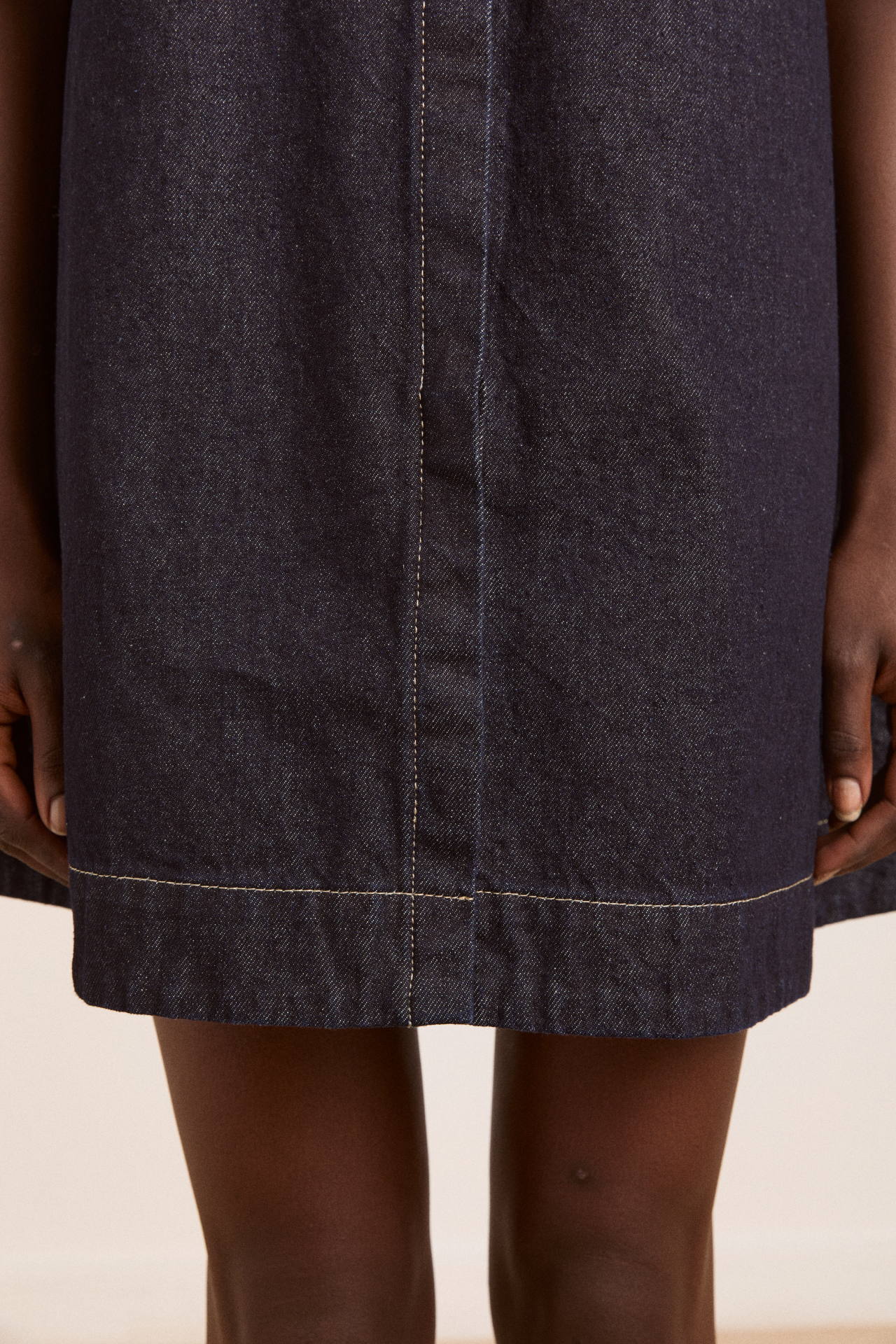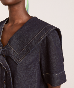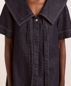 Boxy and structured, our Goldie dress has been reimagined in our signature indigo denim. Crafted from 100% organic cotton, the Goldie features an oversized collar with a functional bow and a flattering A-line silhouette. Layer over a matching jean or wear on its own as the days warm up.