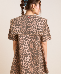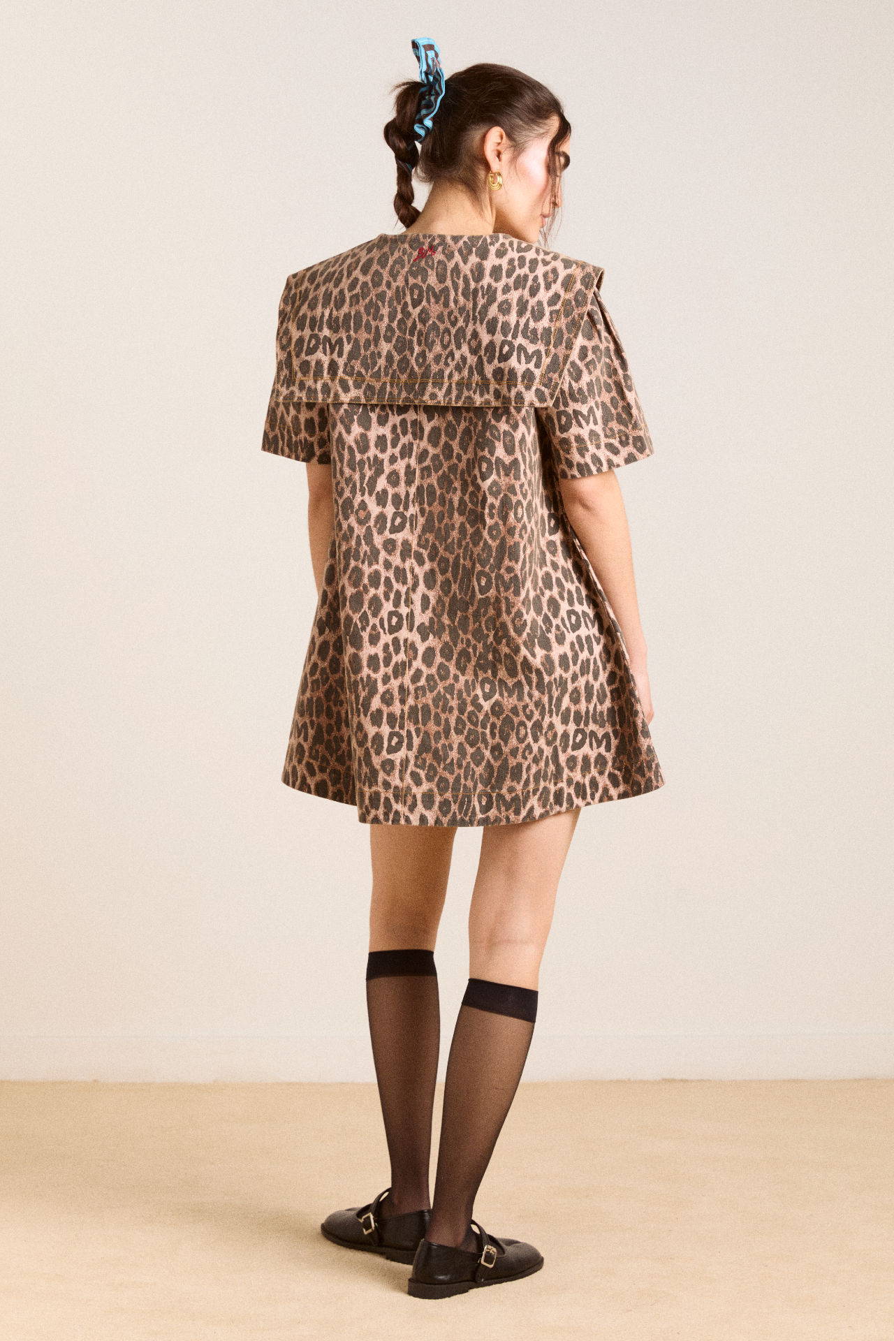 Boxy and structured, our Goldie dress is back, now available in our best selling DM leopard print. Crafted from 100% organic cotton, the Goldie features an oversized collar with a functional bow and a flattering A-line silhouette. Layer over a matching jean or wear on its own as the days warm up.