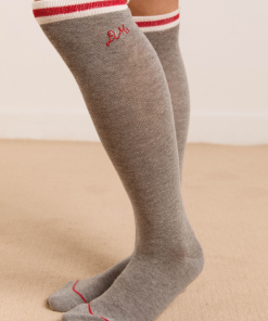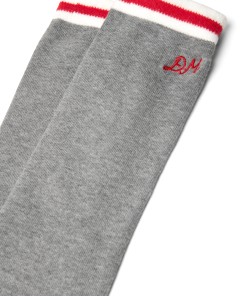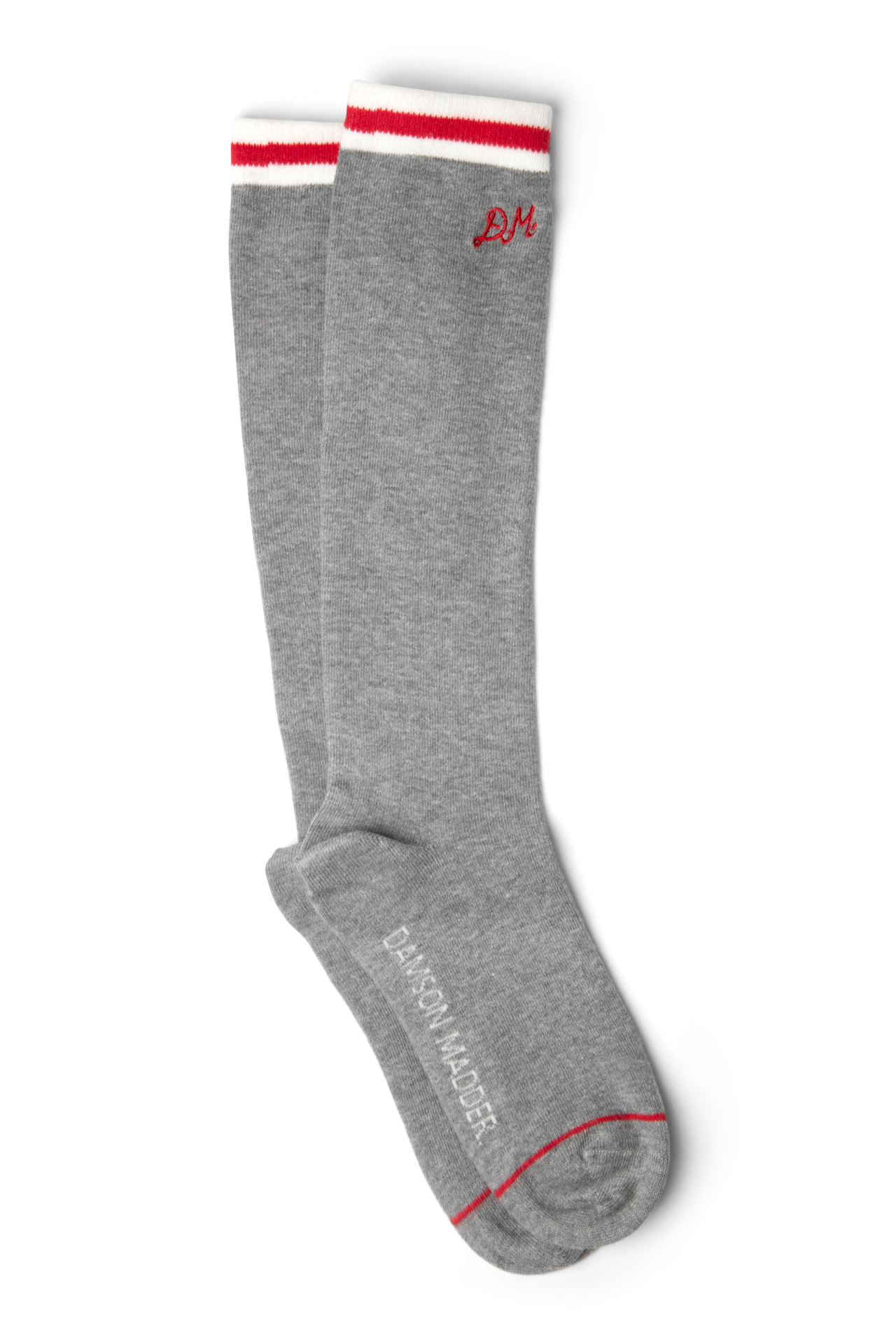 Meet our signature knee length socks in grey marl with red stripe. Crafted from 75% organic cotton, 23% nylon, and 2% elastane, offering a perfect blend of comfort, durability, and a touch of stretch. The soft, organic cotton ensures a gentle feel against the skin, while the nylon and elastane contribute to enhanced flexibility and shape retention.