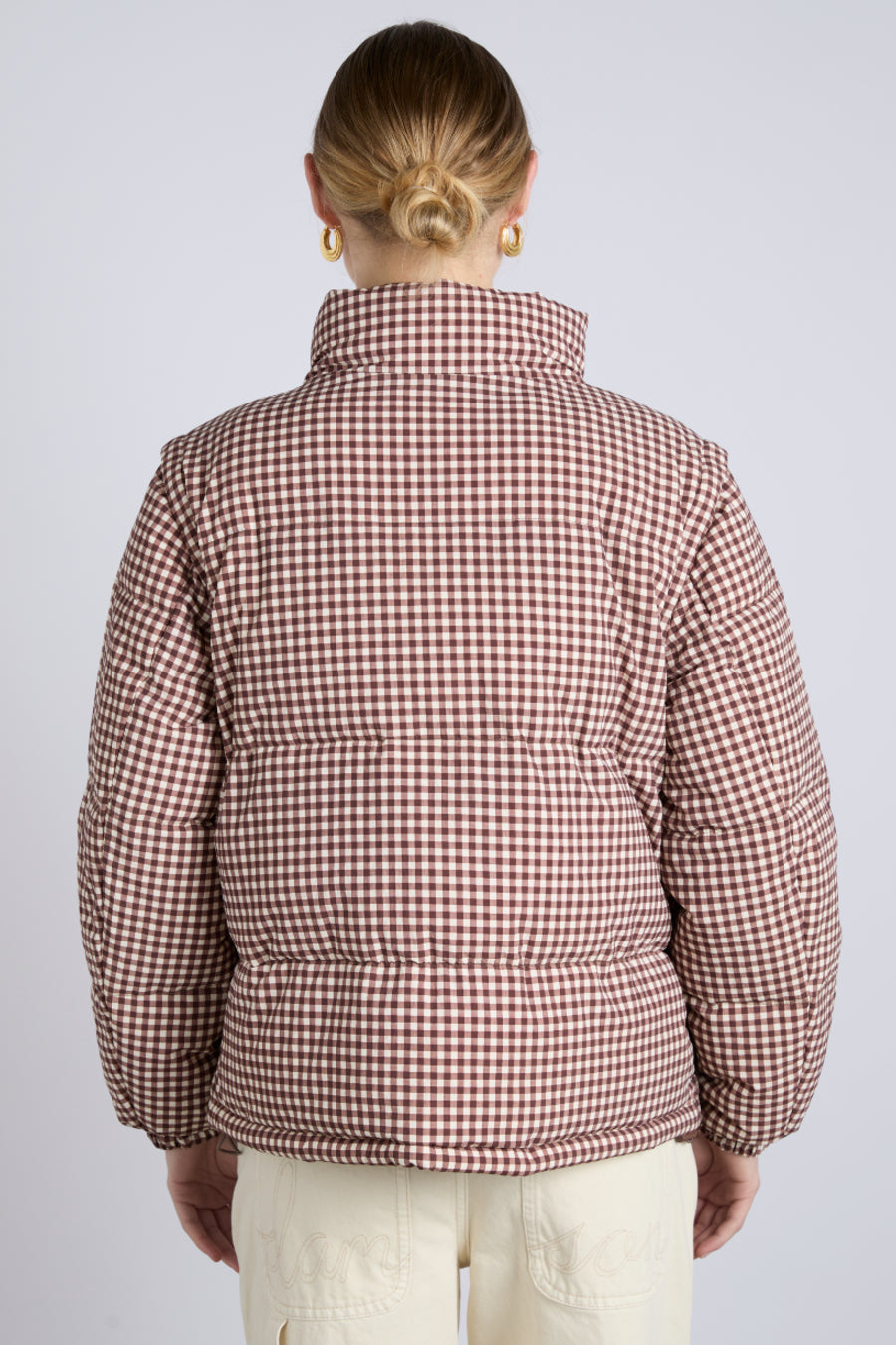 Damson Madder Women’s Jennifer Check Puffer – Chocolate Gingham | Brown