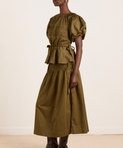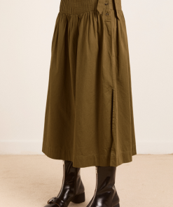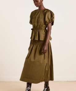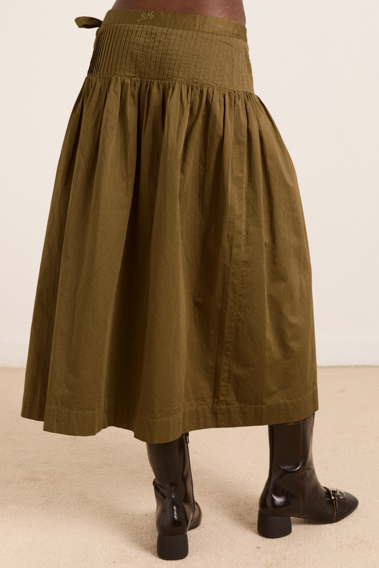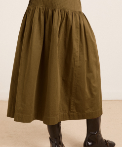 Effortlessly floaty and feminine, meet the Josie Midi Skirt in olive cotton satin. Crafted from 100% organic cotton, the Josie features a pleated waist panel. Easy wearing, the Josie can be dressed up or down. Pair with the matching Hadley Blouse for ultimate impact.