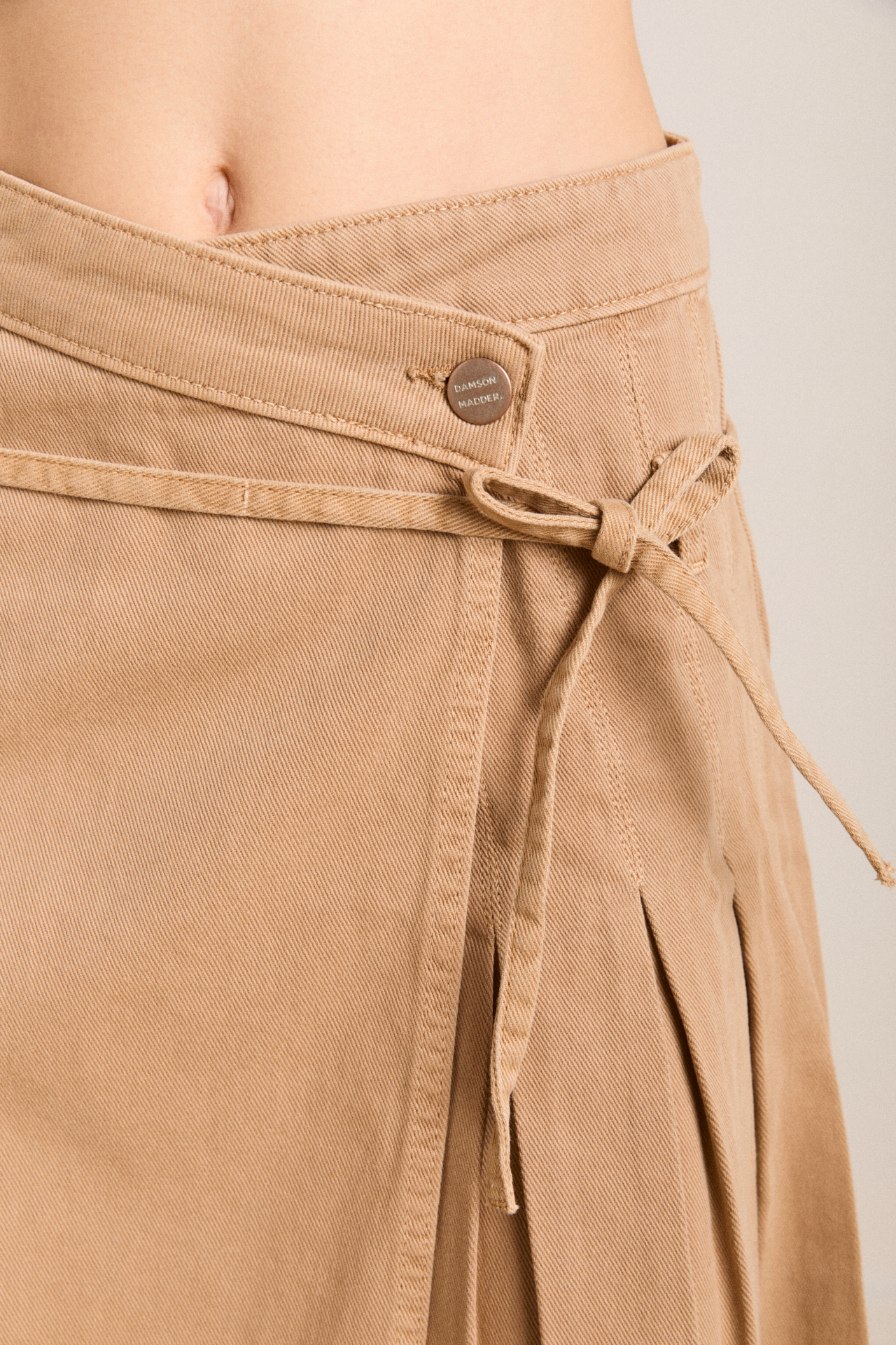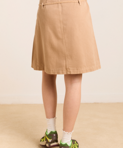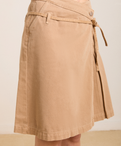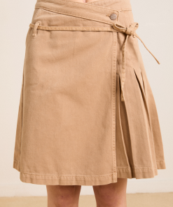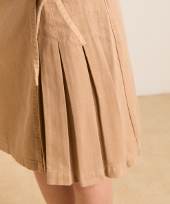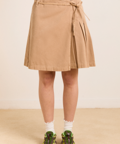 Our Kat Kilt leans into tradition with its pleat detailing, while its camel garment dye denim nods to modernity. Made from 80% organic cotton and 20% recycled cotton, it features a removable belt and side pockets. Pair with our matching Francie Blazer or layer over our matching Sylvie Jeans.