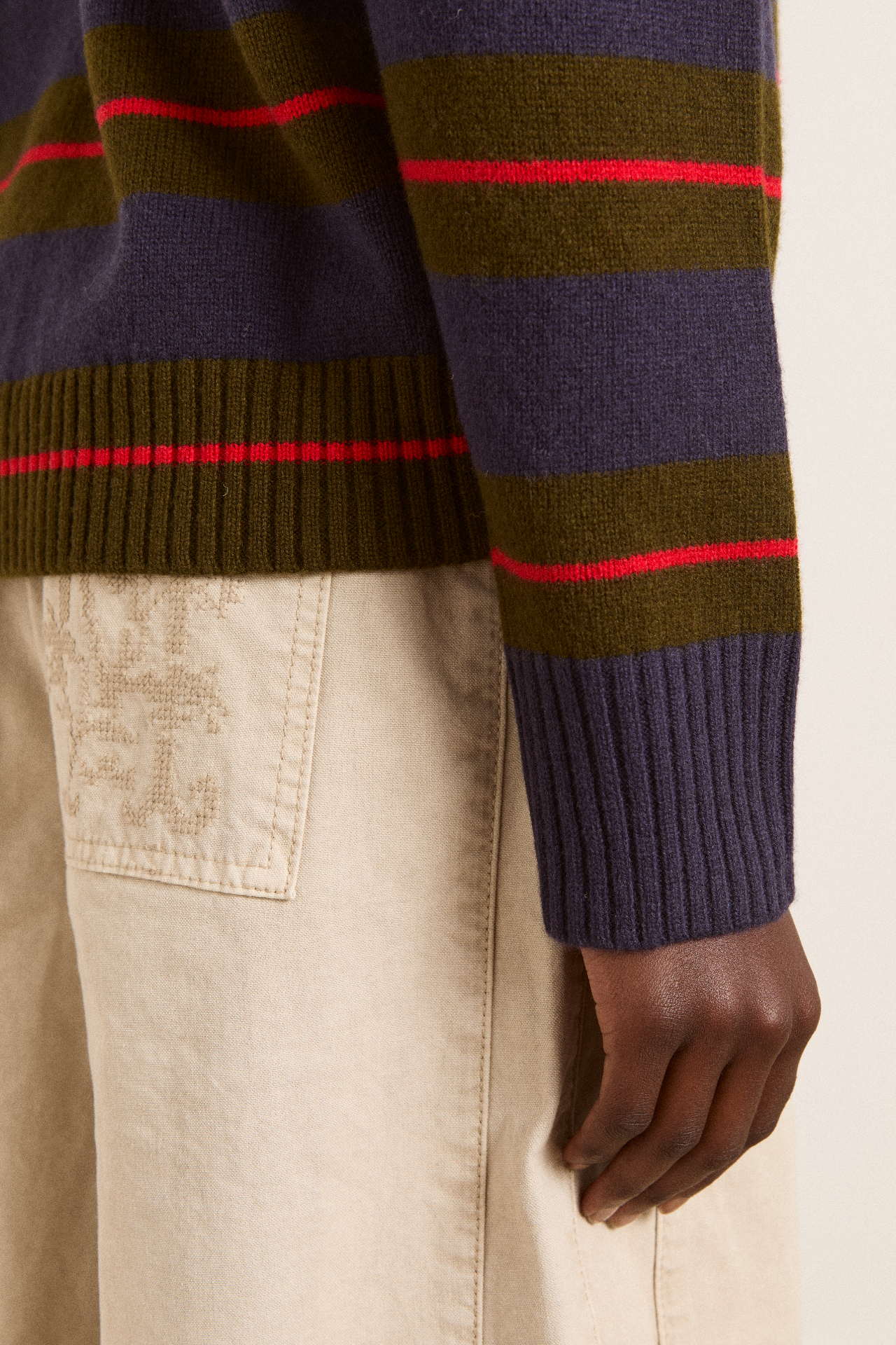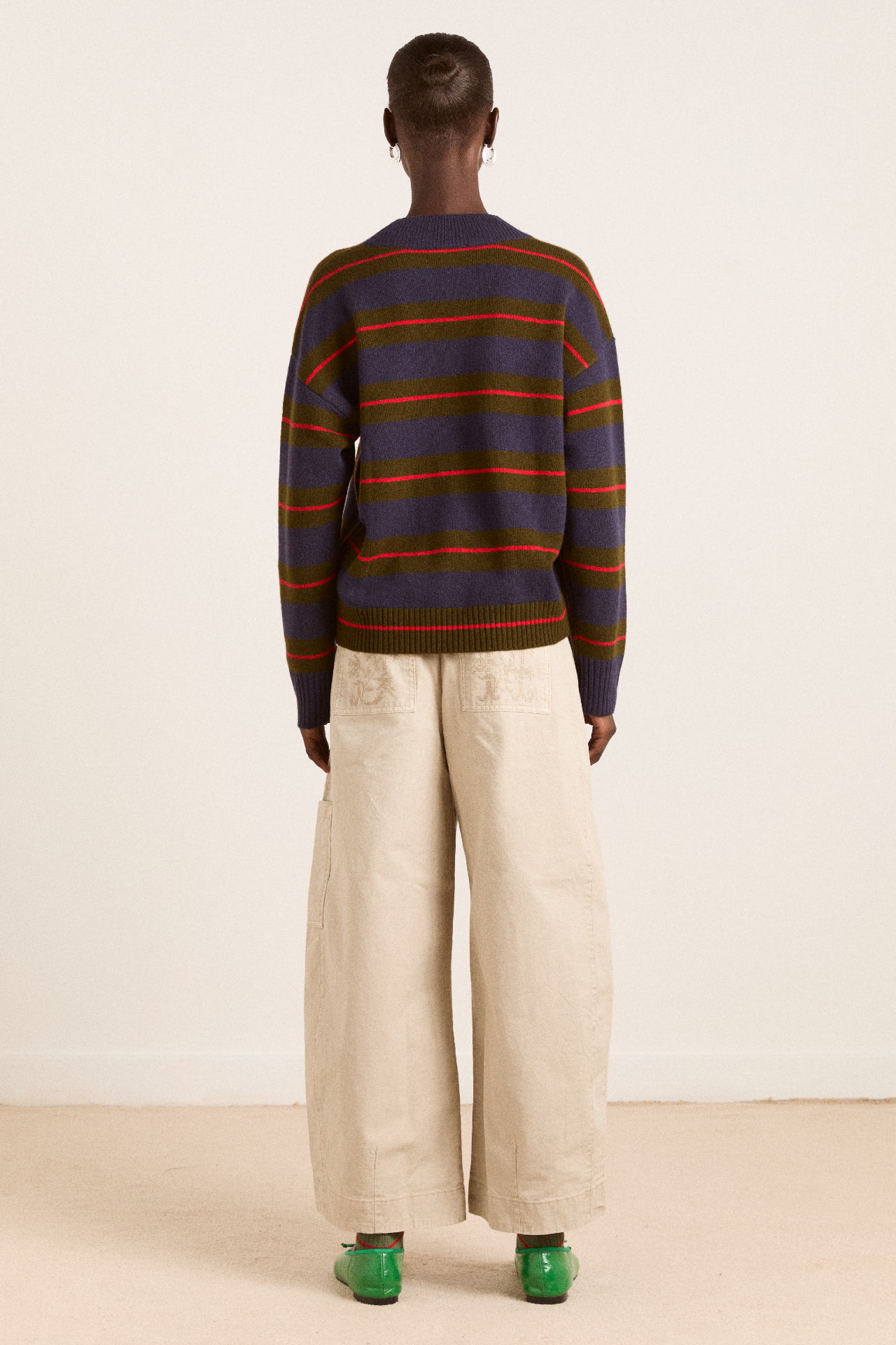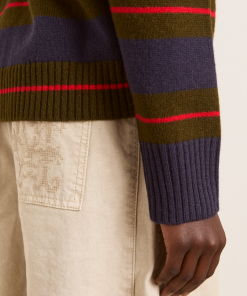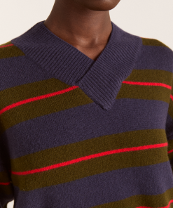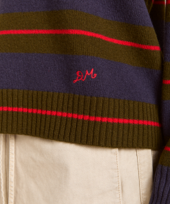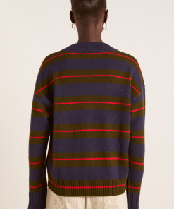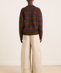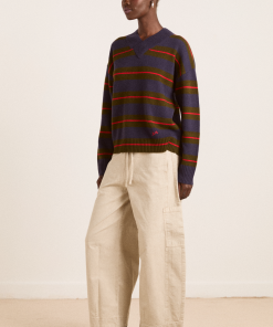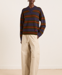 A relaxed essential with a graphic edge, the Odette v Neck is a boxy-fit knit in merino wool, featuring an all-over stripe pattern and a flattering V neckline, striking a balance between bold and understated. Finished with subtle “DM” embroidery on the body for a signature touch.