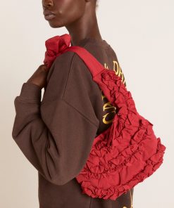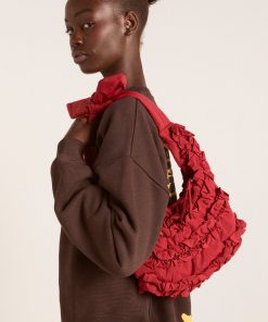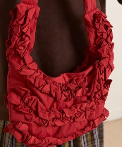 Complete your look with the best selling Quinn Slouchy Bag in red. Featuring romantic ruffle detailing and a zip closure. The adjustable tie up straps offer style and versatility, making this the perfect day to night bag. Can be worn cross body.