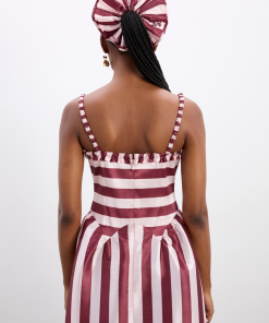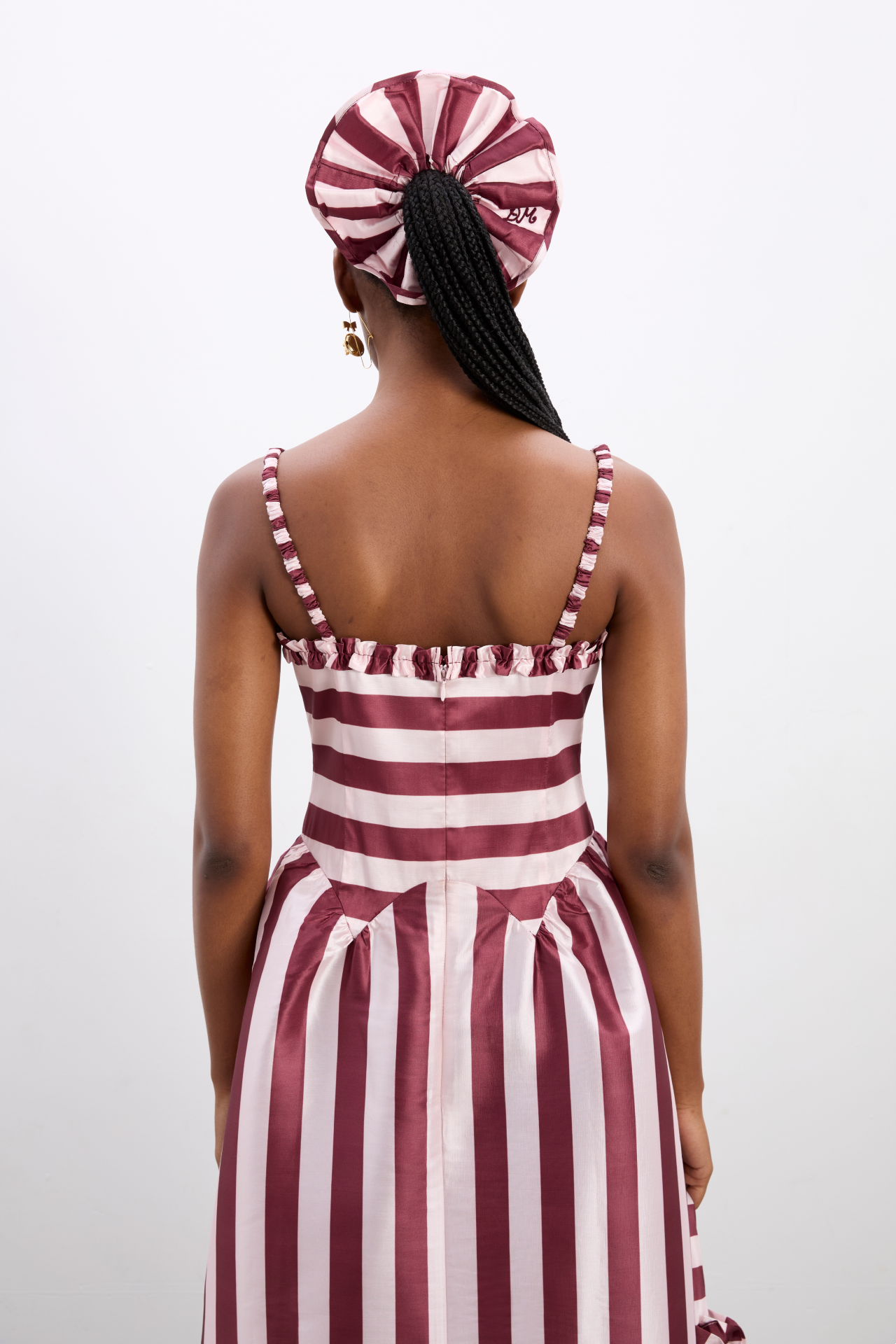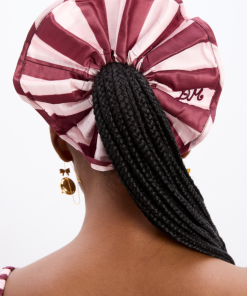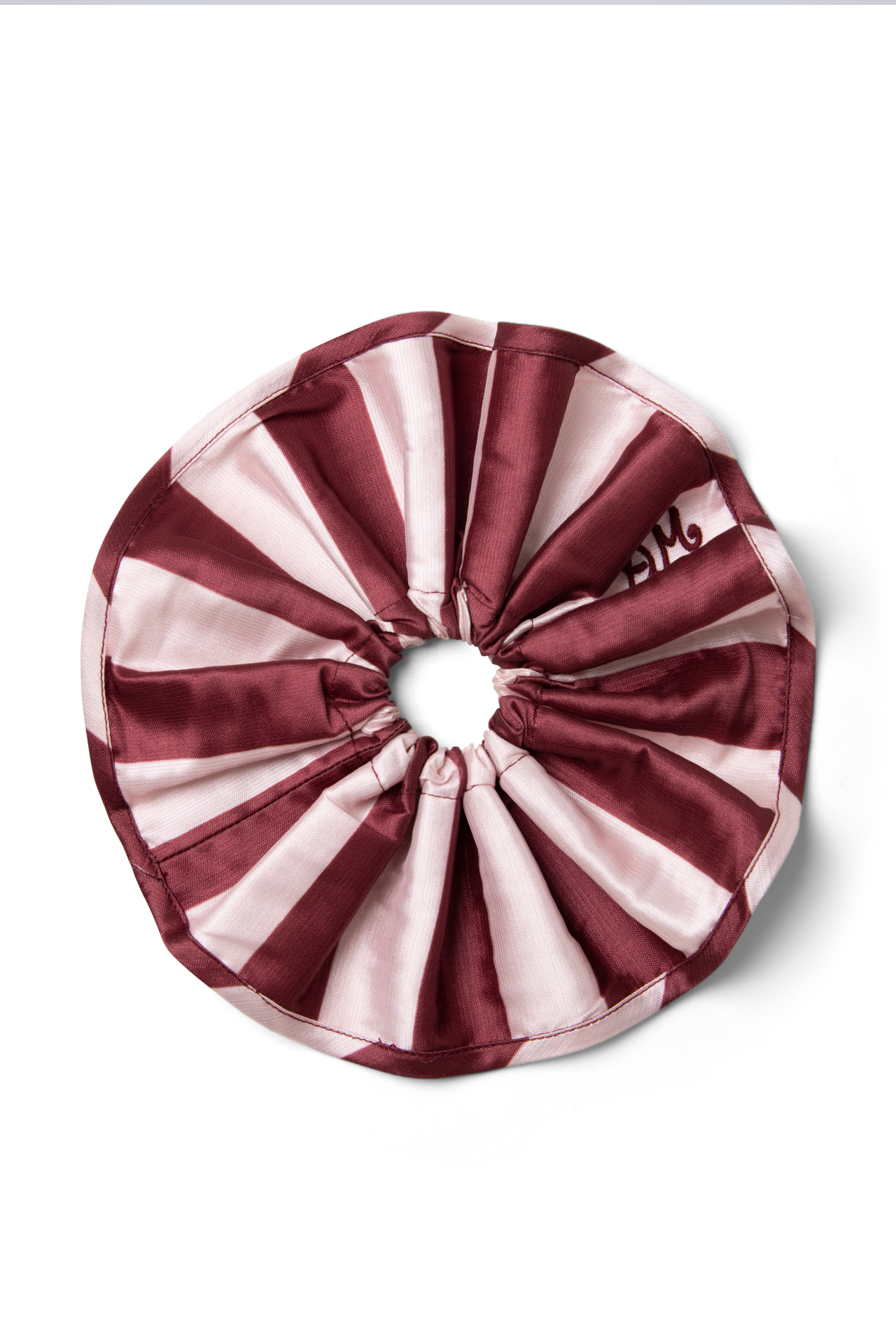 Bold and oversized, meet our Rachel Scrunchie in pink burg stripe. Pairs perfectly with our matching Rachel Ruffle Midi Dress or Rachel Ruffle Bag.