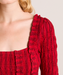 Flirty and fun, the Raphaela Mini Dress in red stripe is adorned with an all over stripe print and ruffle detailing. Featuring a square neck and shirred bodice for a flattering fit. Matching accessories available.