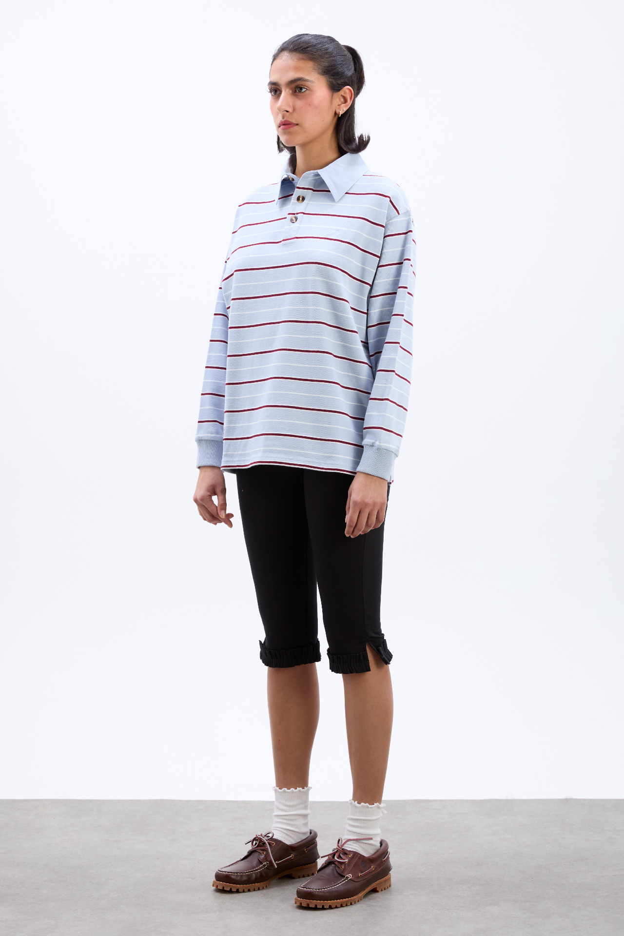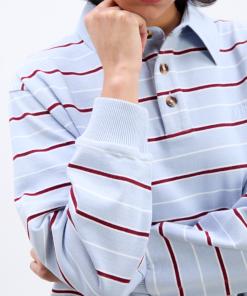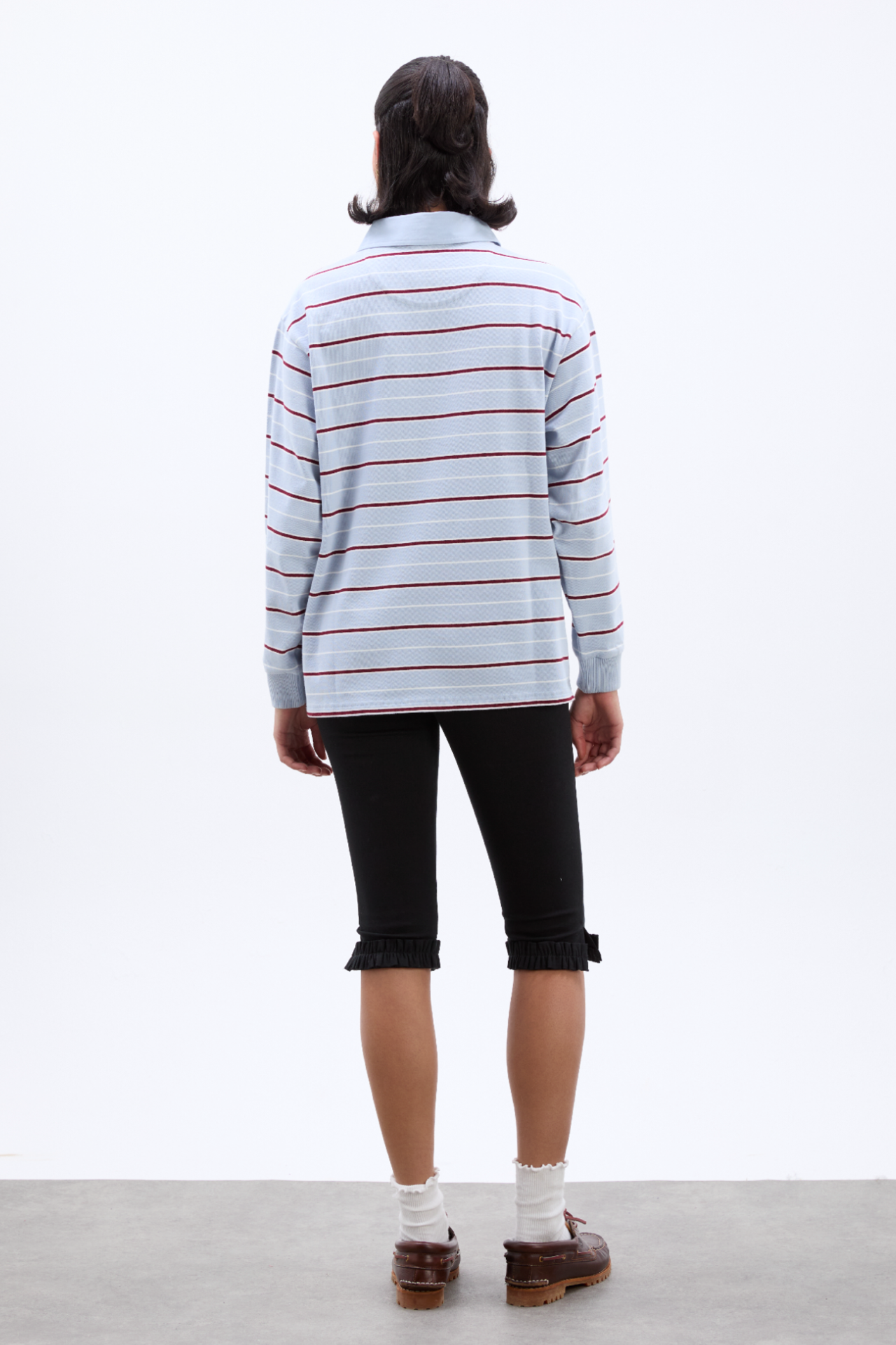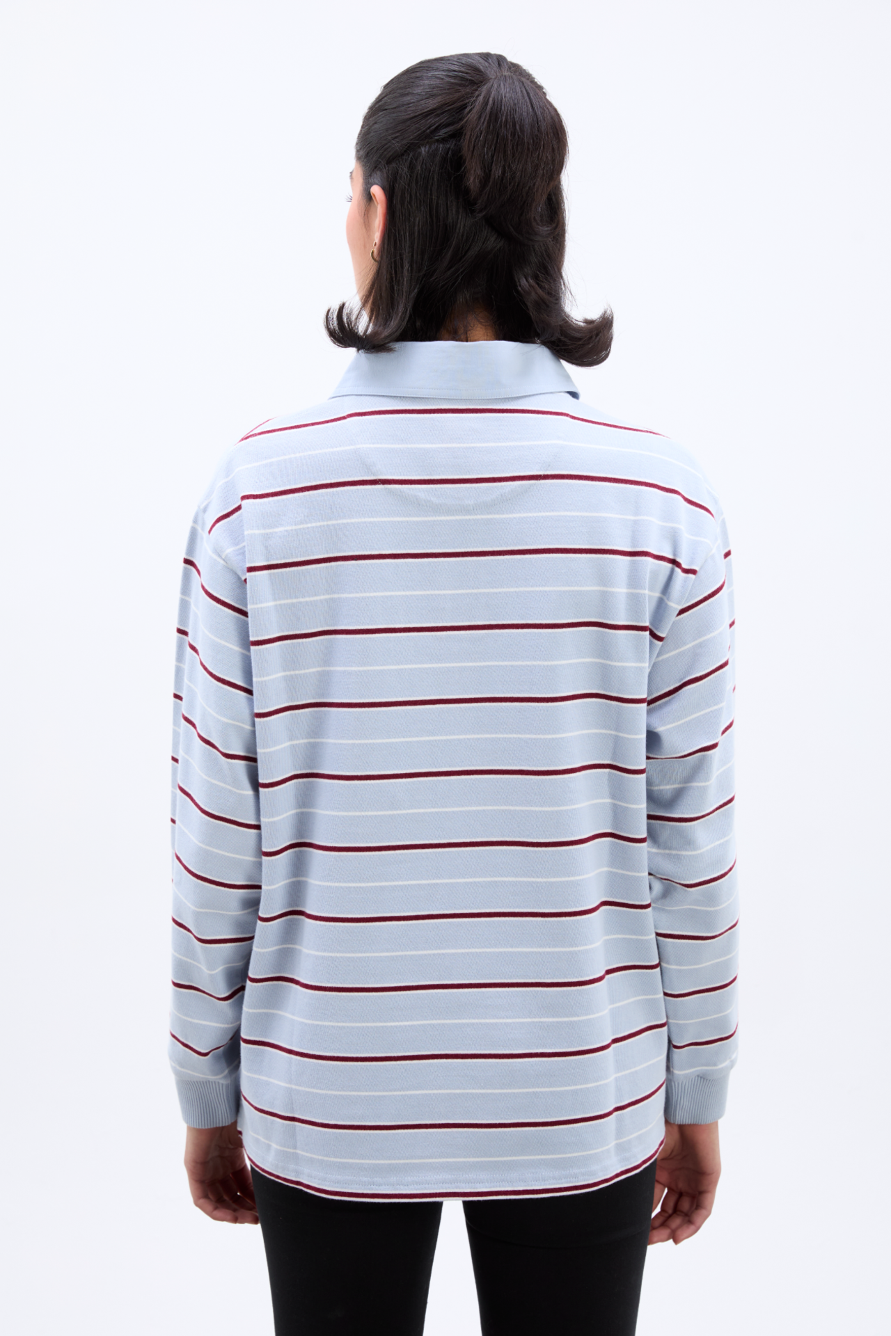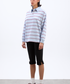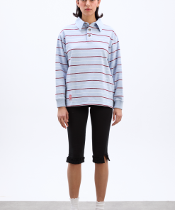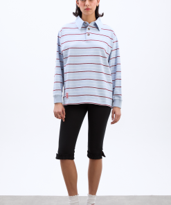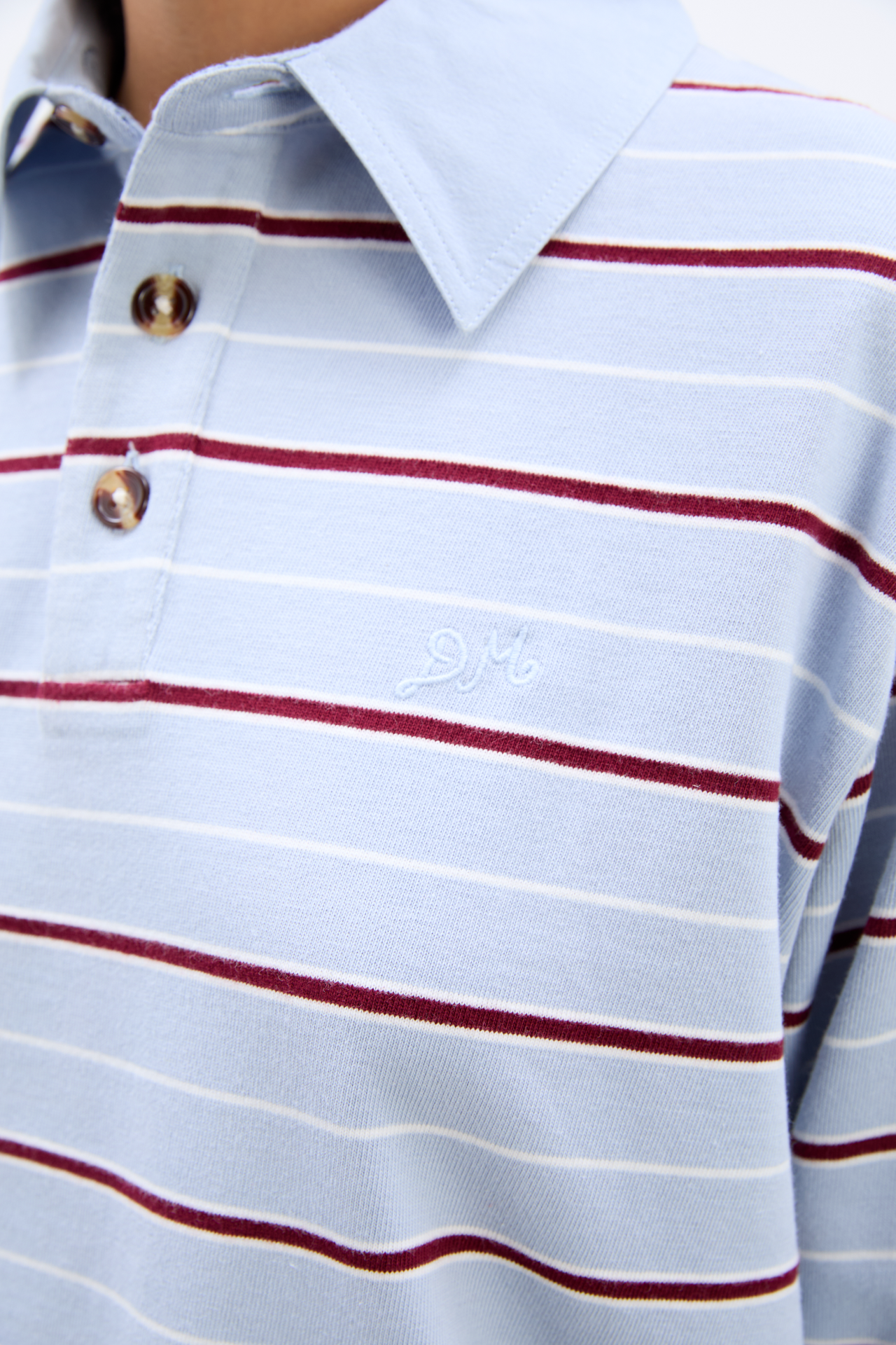 Introducing your new weekend wardrobe go-to in a new colourway: the Remie is our take on a classic rugby shirt in a light blue stripe. Made from 100% organic cotton and finished with signature DM embroidery on the front and a woven DM branded tab.