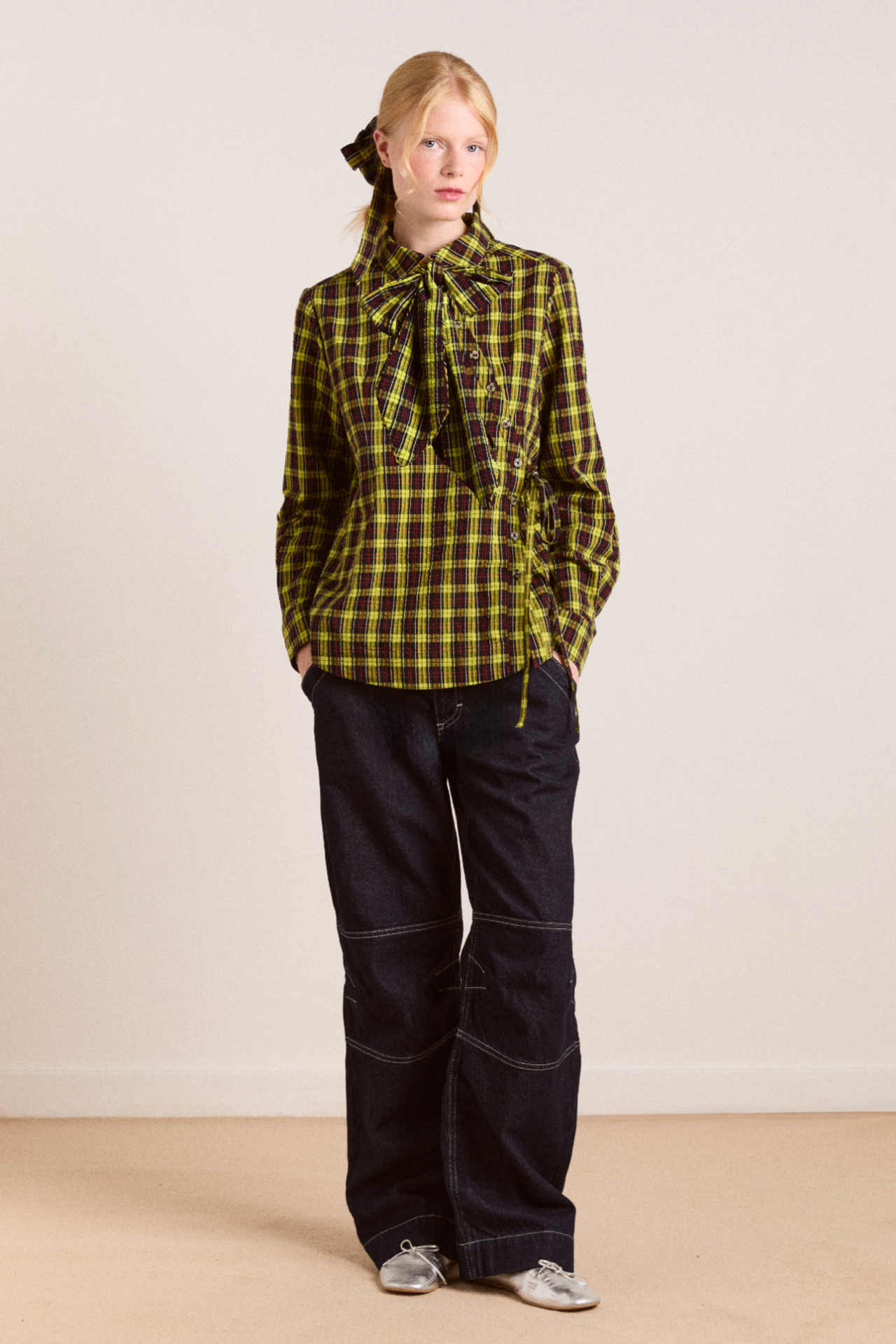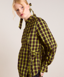 Damson Madder Women’s Robyn Shirt With Removable Tie – Yellow Check | Yellow