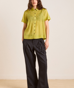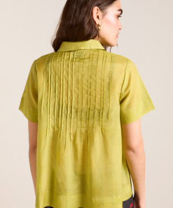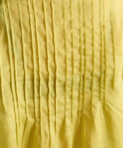 The perfect mix of tailored and floaty, meet the Sheer Wendy Blouse in golden lime. Complete with a sheer finish, button down front, and pin tuck detailing. Pair with our matching Glinda Ruffle Mini Skirt in golden lime for a statement, or with a basic to let the Wendy do all of the talking!