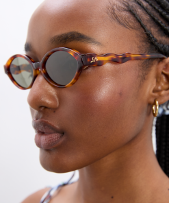 Meet our Slim Oval Sunglasses in tortoiseshell, with smoke lenses and a wavy arm with DM branding detailing. Our new Eyewear range is made from recycled acetate & features polarised lenses. Each style comes with an eco-friendly cork case, with recycled lining & cleaning cloth.