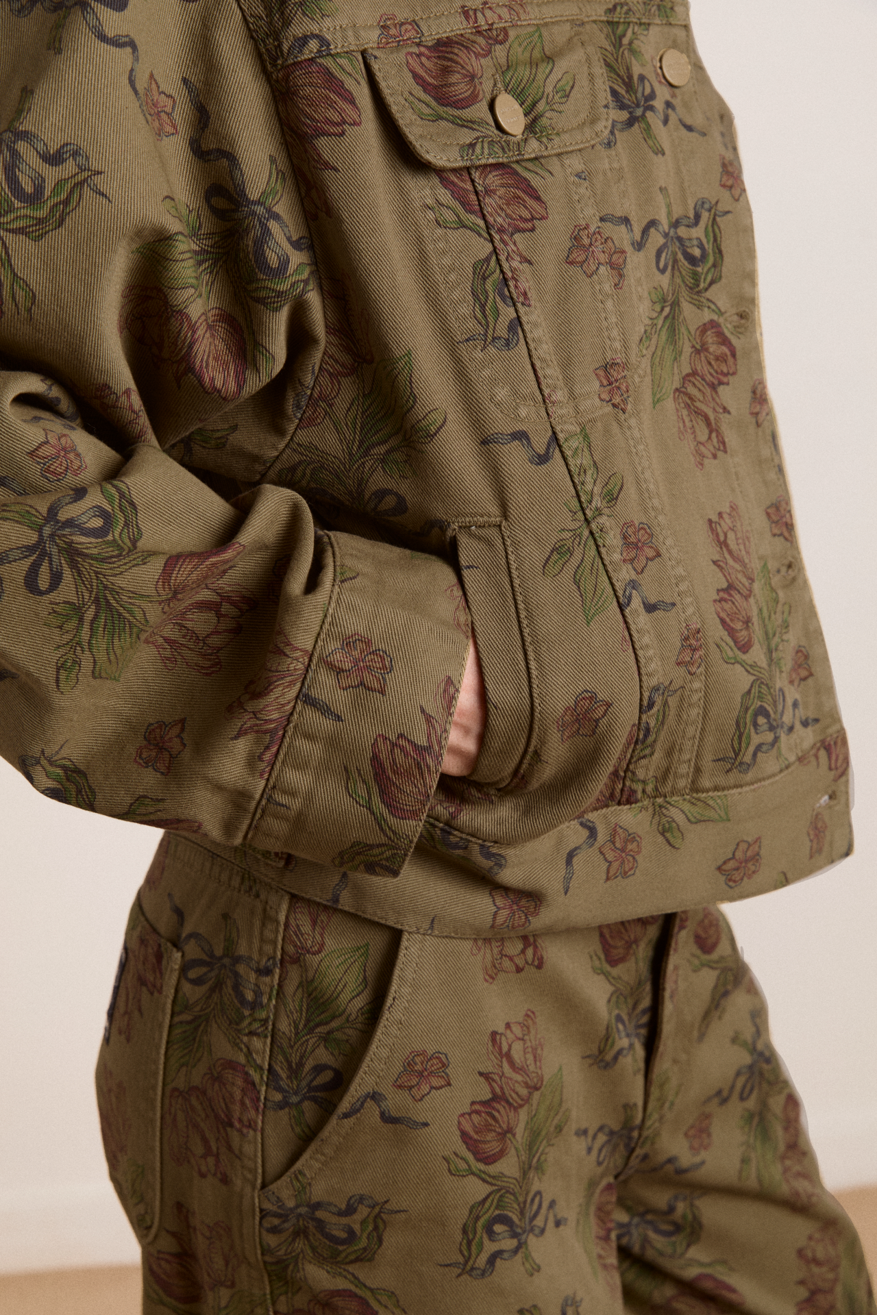 Inspired by a classic design, our Stacia Jacket is both structured and relaxed in equal measure. Expertly crafted from 100% organic cotton, the Stacia features an all over tulip print with khaki overdye. Complete with front and chest pockets, DM branded shank buttons and a DM woven branded tab at the back neck, the Stacia will become a staple in your wardrobe. Pair with our matching Drew Jeans for a complete head-toe-toe look.