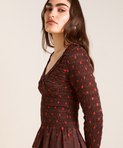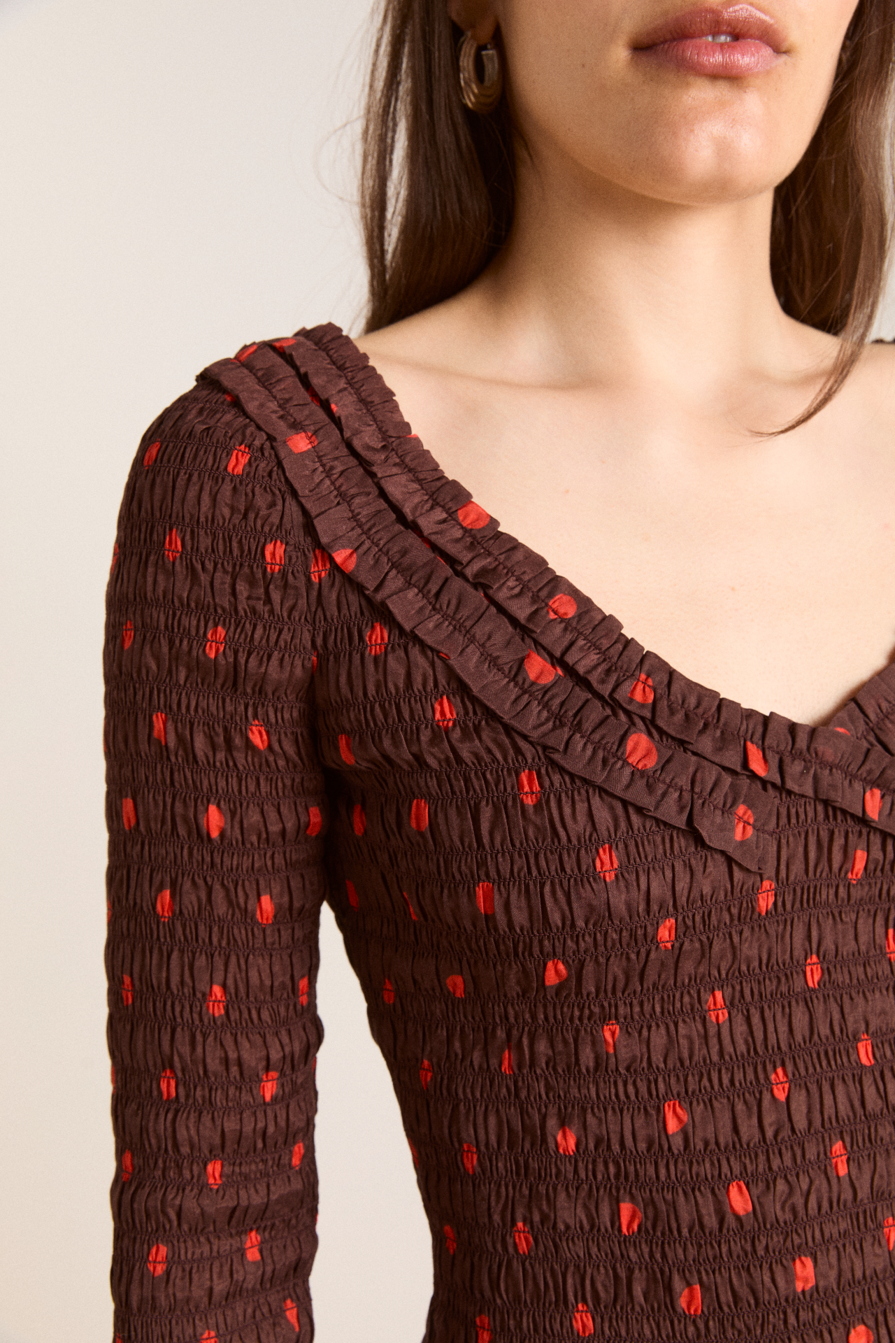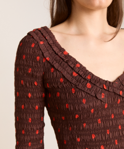 • Shirred bodice and sleeves