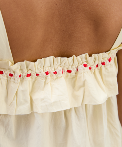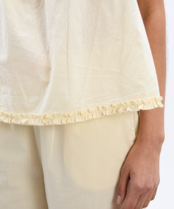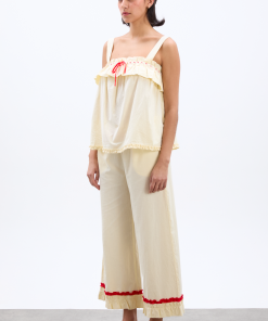 Soft and airy, the Tula Wide Strap Smock Cami is crafted from 100% organic cotton in a relaxed smock shape. Designed with a ruffle neckline, contrast tie at the neck, and delicate ruffle hem detailing, this true-to-size cami pairs effortlessly with the matching Tula Frilly Hem Trousers.