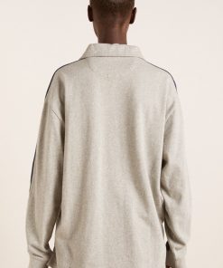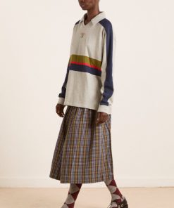 Introducing your new weekend wardrobe go-to. The Verity V-Neck Rugby in placement stripe reimagines the classic rugby. Crafted from 100% organic cotton, the Verity is a relaxed fit jumper featuring contrast arm stripes, placement front stripes and cuffed sleeves, effortlessly combining comfort with style.